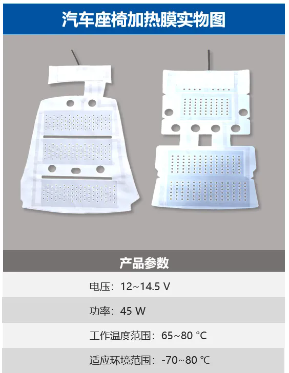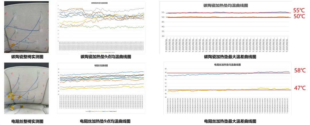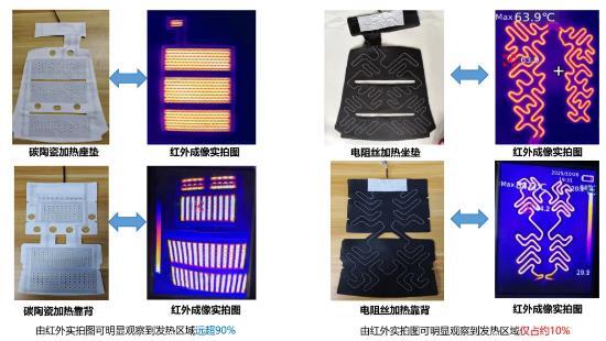 除了跪压测试数据上的突破,基于自主研发的二维电热材料,碳陶瓷汽车座椅加热膜还实现多项技术突破。