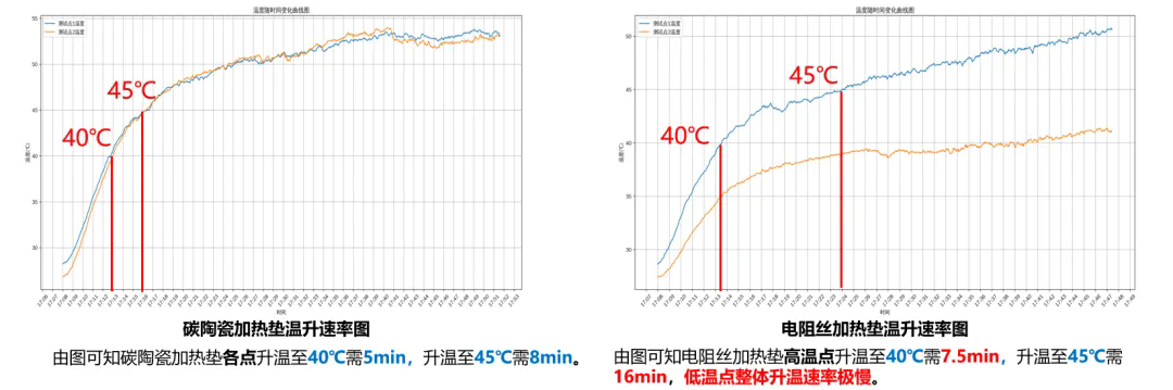 温升性能显著提升,整椅升温至40℃仅需5分钟,升温至45℃仅需8分钟,较电阻丝方案分别提升33.3%和50%,同时实现20-30%的能耗节约。
