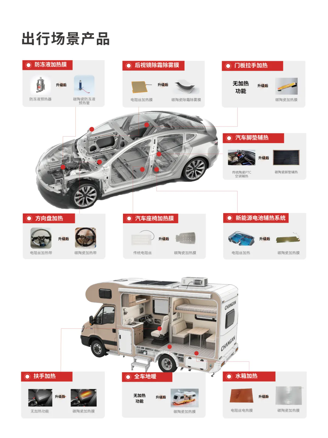 在实现材料突破的同时,海骊的碳陶瓷二维电热技术正全面赋能多个出行场景,推动热管理从“单一功能”向“系统体验”升级。