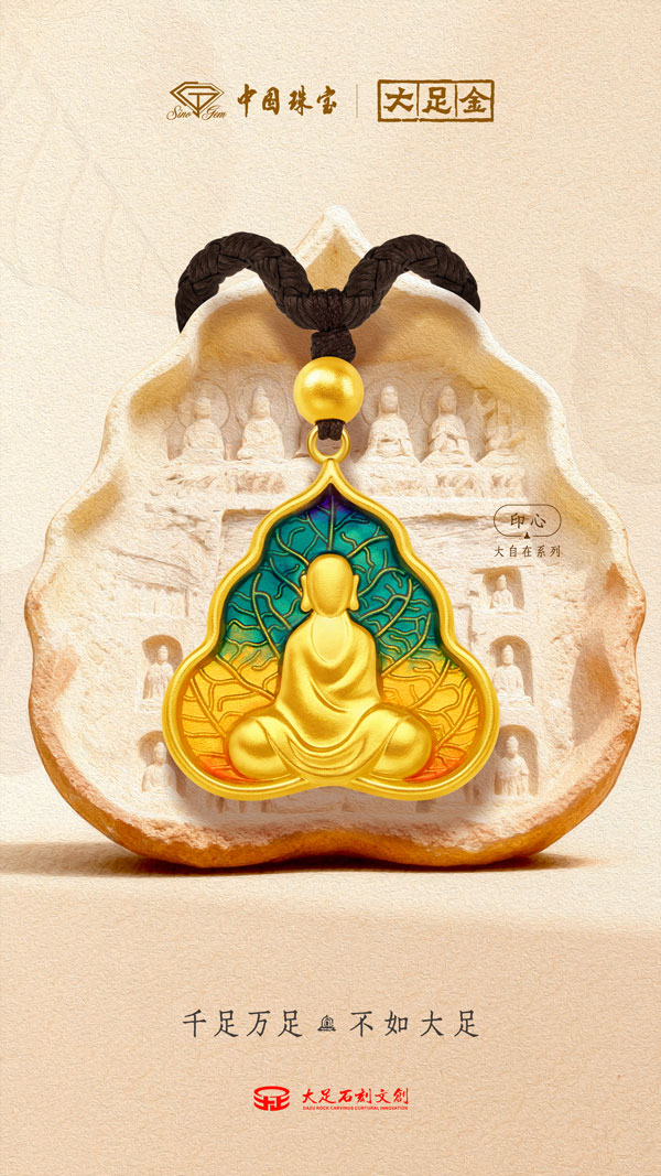 激活文化艺术IP的当代价值,推动非遗技艺的活化,创新应用珐琅、花丝等传统工艺,打造“只此青绿”“大足金”“国宝守护”等文化艺术IP作品,以生动实践致力于“让收藏在博物馆里的文物、陈列在广阔大地上的遗产、书写在古籍里的文字都活起来”,让消费者在佩戴中感知历史、触摸文明。