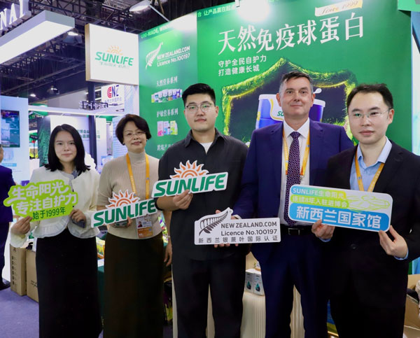 第八届中国国际进口博览会在2025年11月5日隆重开幕,8届“进博全勤生”SUNLIFE生命阳光作为今年的37个新西兰国家馆代表品牌之一,再获新西兰驻华大使乔文博(Dr. Jonathan Austin)莅临参观。