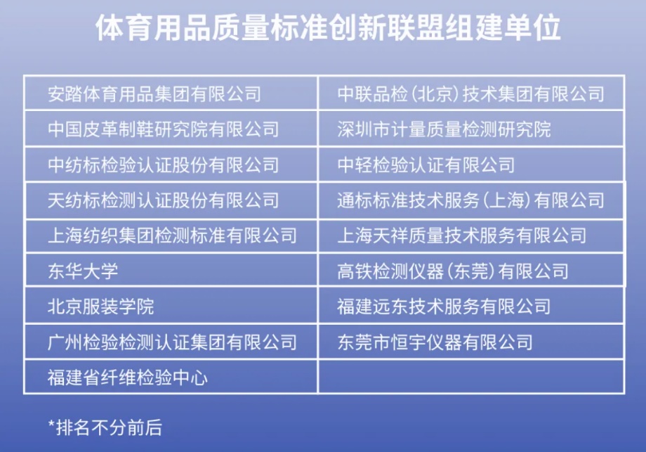 今日,国内体育行业首个体育用品质量标准创新联盟(以下简称“联盟”)正式成立,并在安踏集团晋江总部举行第一届理事会暨联盟启动大会。该联盟由安踏集团牵头发起,联合中国皮革制鞋研究院有限公司、中纺标检验认证股份有限公司、北京服装学院、东华大学等16家成员单位共同组建,汇聚行业顶尖力量,构建集“产、学、研、检、用”于一体的质量标准创新协同平台。