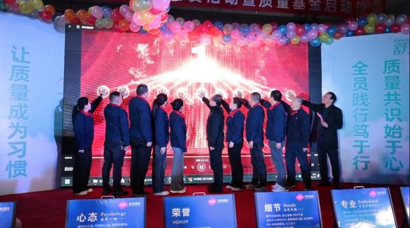 在全场瞩目下,11位核心部门负责人共同触摸启动球,屏幕亮起“河南舒莱质量基金启动仪式——全员参与・持续改善”的醒目字样,标志着质量基金正式进入常态化运营阶段,为全员质量改进活动提供坚实保障。