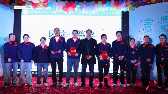 启动仪式后,用户服务中心总监段亚飞就 2025 年 1-10 月份消费者反馈数据,向各中心进行全面同步。此次数据共享覆盖产品体验、售后需求及质量优化建议等核心维度,进一步强化了各中心间的工作联动与协同衔接,为后续精准提升质量、高效响应消费需求筑牢信息基础。质量月知识竞答赛火热开赛。竞赛由乔庆军、付欢欢主持,生产部、质控部甲班、乙班、丙班员工组成参赛队伍,以“甲乙丙循环答题”的方式展开比拼。竞赛题目紧扣工艺标准、产品性能及质量管控要求,员工答对当场领取礼品,答错或缺席则扣除当班积分,积分结果直接关联团体奖项评比。
