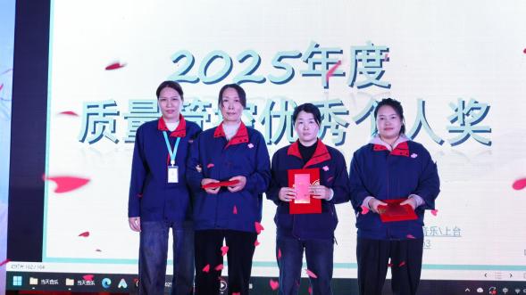 此外,活动还依据年度质量管控数据,颁发了多项重磅奖项:生产质量优胜班组奖1名、品质管控优胜班组奖1名,各获3000元奖金及证书;6名生产质量先进个人、3名品质管控优秀巡检个人脱颖而出,每人斩获1000元奖金及荣誉证书,以表彰他们在质量改进、管控工作中的突出贡献。