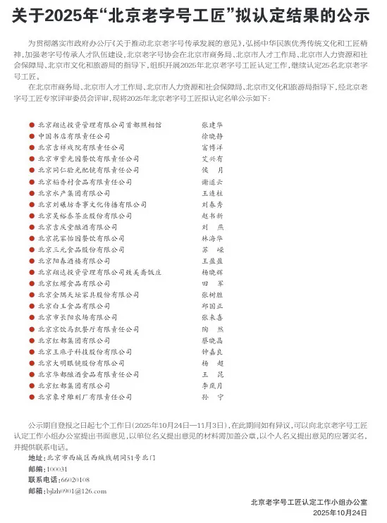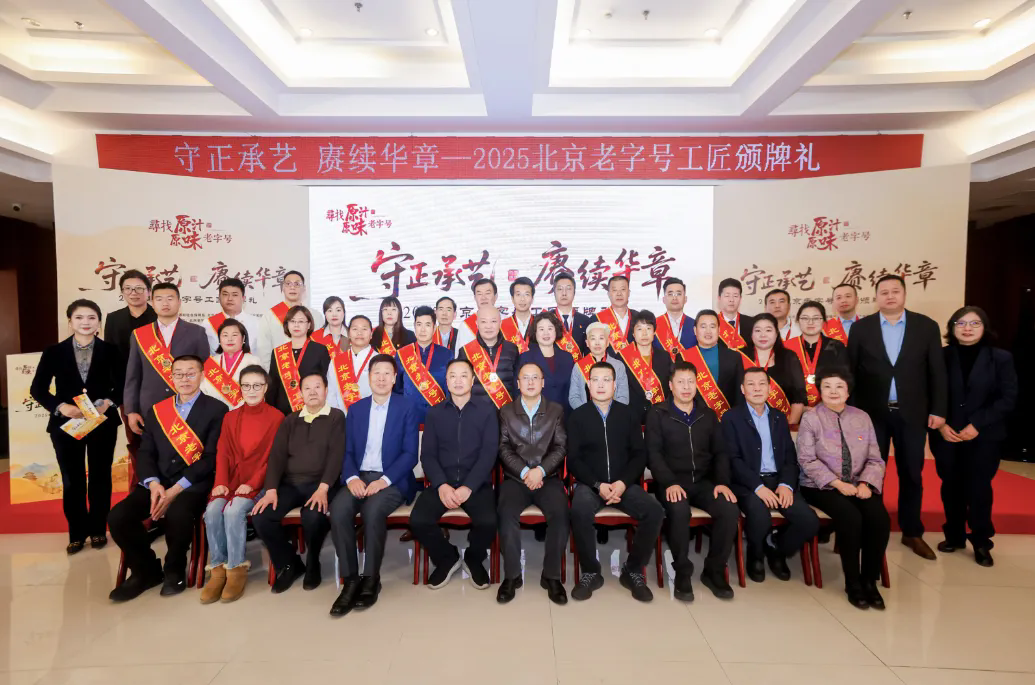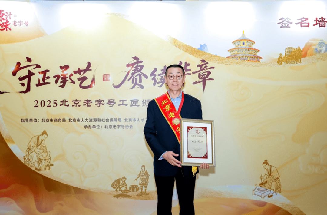 11月28日,由北京市商务局、北京市人力资源和社会保障局、北京市人才工作局、北京市文化和旅游局作为指导单位,北京老字号协会承办的“守正承艺・赓续华章2025北京老字号工匠颁牌礼”在北京圆满举办。老字号代表、行业专家及媒体代表齐聚现场,共同见证这一匠心传承的荣耀时刻。吴裕泰掌门人赵书新荣获“北京老字号工匠”称号并作为工匠代表发言。