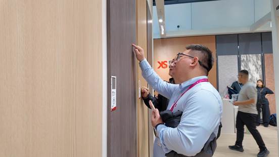 针对特定地域环境需求的荣耀系列饰面板,以其多层板基材带来的卓越稳定性(尤其适合南方潮湿环境)和30款持久靓丽的花色,获得了众多关注实用性能与耐用品质的客户高度认可。同时展出的PET系列、至臻系列饰面板及多样化的地板产品,共同构成了Karrisen凯立森®完整的产品生态,满足了从家居到商业、从墙面到地面的全方位材质应用需求。