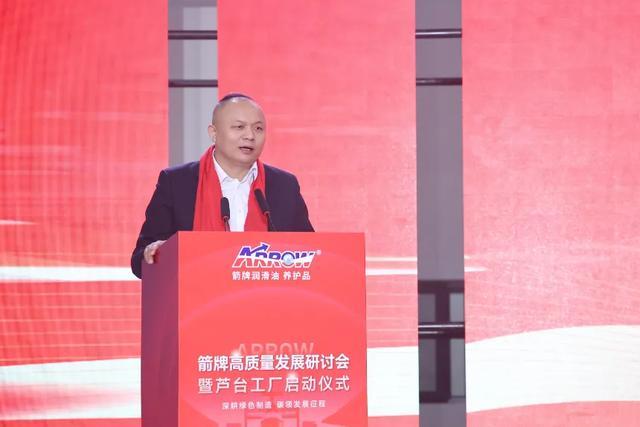 在致辞中,箭牌集团董事长杜彬深入阐述了“为什么要建设箭牌芦台绿色智能工厂”,并向支持和帮助过箭牌发展的各界人士表示衷心感谢。长期以来,箭牌始终坚持绿色、低碳、可持续高质量发展之路,为润滑油行业中国品牌走向世界贡献一份自己的力量。芦台工厂的建成投产,也是箭牌作为润滑行业中国品牌走向世界的一大重要里程碑。