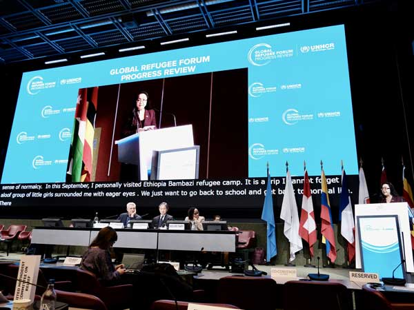 安踏集团副总裁李玲在全球难民论坛中期回顾上发言