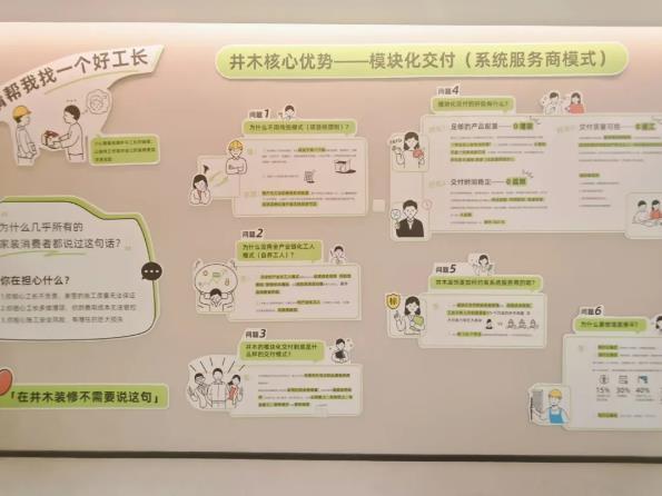 模块化交付体系获重点关注,标准化施工保障透明可控。在工程交付环节,井木装饰重点展示了创新的“模块化交付”体系。将传统施工拆解为独立、标准的工艺模块,由严选的一线品牌服务商直接实施,并依托涵盖120余项节点的企业工艺标准进行全程管控。