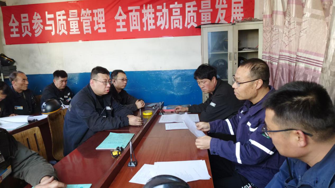 图为开元站管理人员深入选煤厂与生产队组对强化质量管控措施等方面进行了宣传学习。