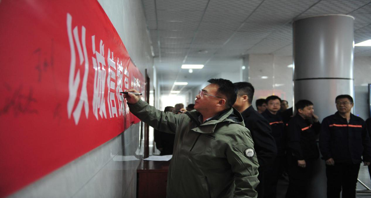 图为组织干部职工进行质量承若签名。