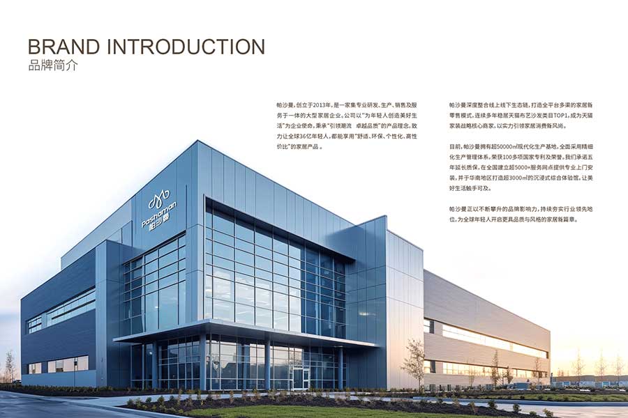 帕沙曼,创立于2013年,是一家集专业研发、生产、销售及服务于一体的大型家居企业。帕沙曼以“为年轻人创造美好生活”为企业使命,秉承“引领潮流 卓越品质”的产品理念,致力让全球36亿年轻人,都能享用“舒适、环保、个性化、高性价比”的家居产品。