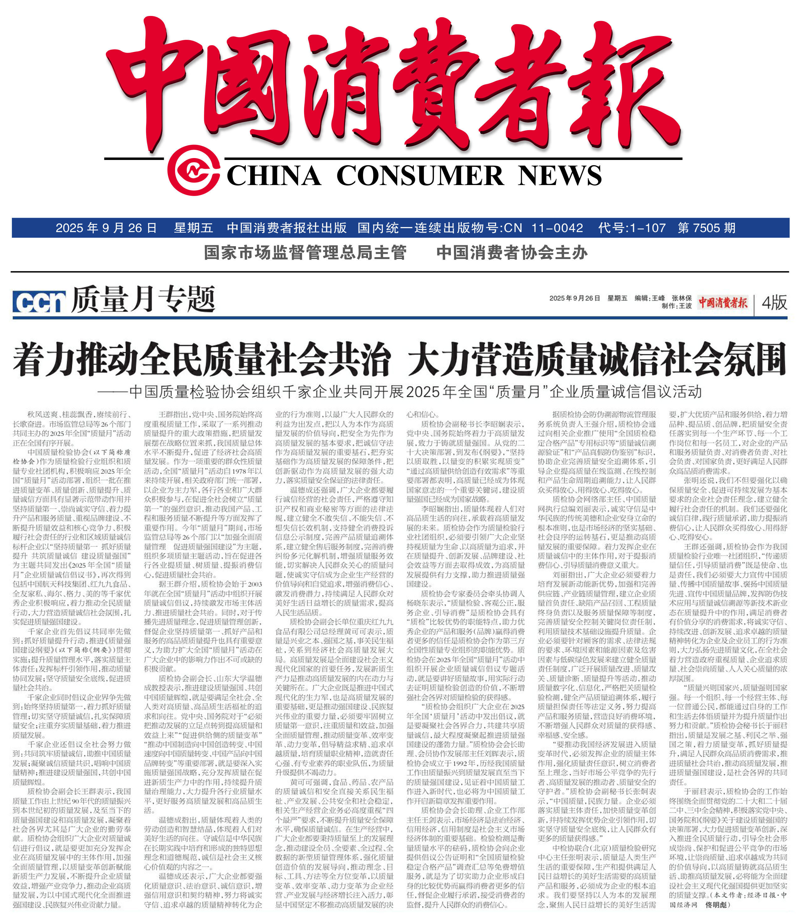——中国质量检验协会组织千家企业共同开展2025年全国“质量月”企业质量诚信倡议活动